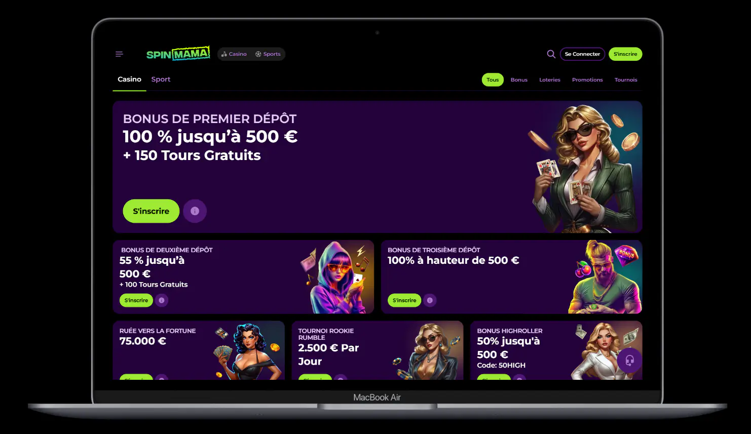 L’application mobile SpinMama vous permet d’accéder à l’ensemble de nos fonctionnalités légales, directement depuis votre smartphone ou tablette. Grâce à la spinmama casino app, les joueurs belges peuvent profiter d’un casino en ligne complet : dépôts rapides, tours gratuits, jeux live, et assistance 24/7. L’interface intuitive vous garantit une navigation simple, un login sécurisé et des paiements instantanés.